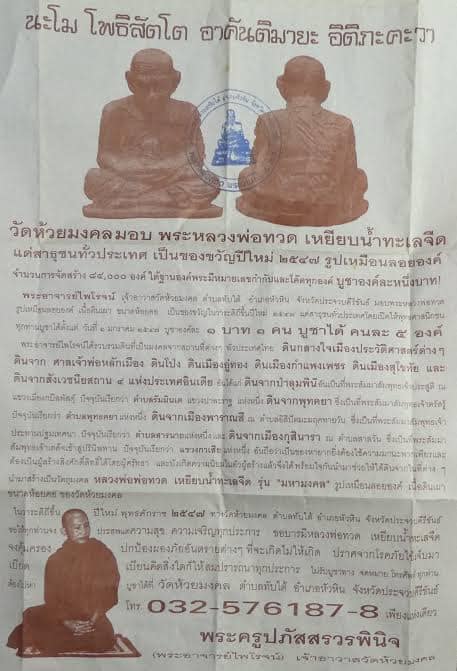 อุดมด้วยดินมงคล และมวลสารมงคล มากมาย หลายชนิด ให้ทำบุญในปี 2548 องค์ละ 1 บาท