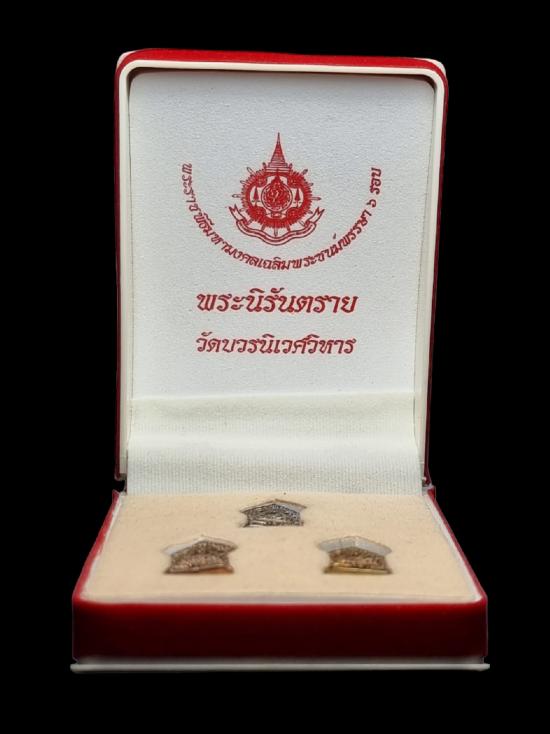 พระนิรันตราย วัดบวรนิเวศวิหาร ปี 2542 เฉลิมพระชนมพรรษา รัชกาลที่ 9 ครบ 6 รอบ เนื้อเงิน + เนื้อนวโลหะ + เนื้อสัตตะโลหะ สภาพสวย กล่องเดิม