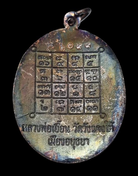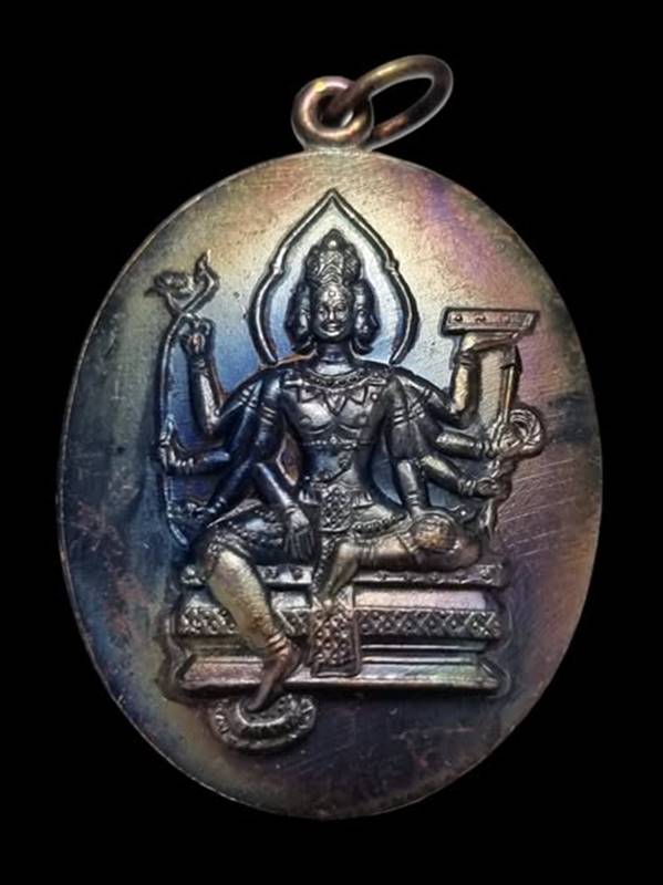 เหรียญพระพรหม แอ่งกะทะ ( รุ่นแรก ) " หลวงพ่อเอื้อน วัดวังแดงใต้ " จ.อยุธยา เนื้อทองแดงรมดำ ผิวรุ้ง สวยมาก ตอกโค้ตและหมายเลข กล่องเดิม