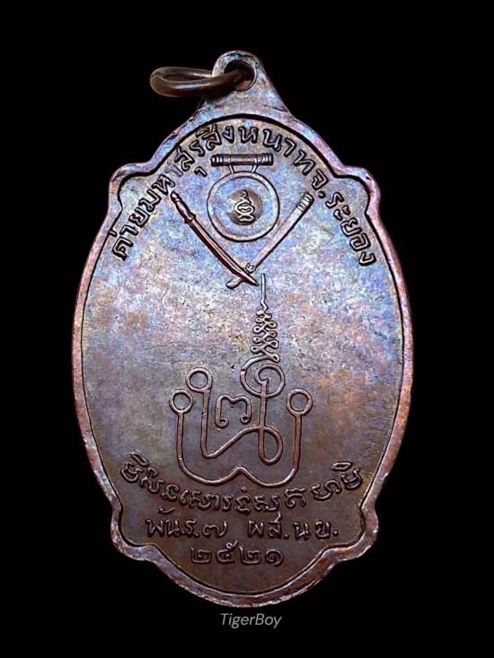 เหรียญสู้ศึก จัดสร้างโดย (ค่ายมหาสุรสิงหนาทจังหวัดระยอง พัน ร.๗ ผส.นย. จ.ระยอง) พิธีใหญ่ ปี 2521 เนื้อทองแดง ตอกโค๊ด |