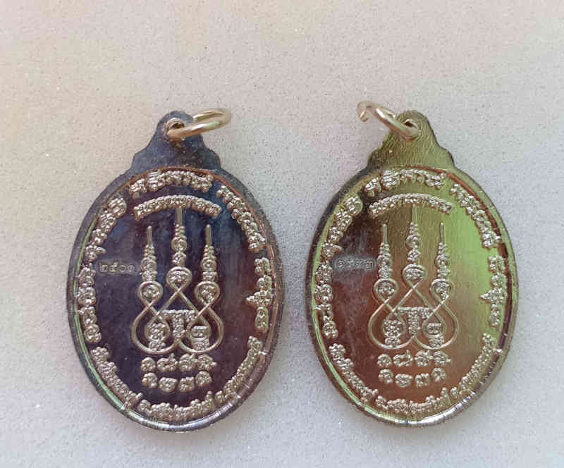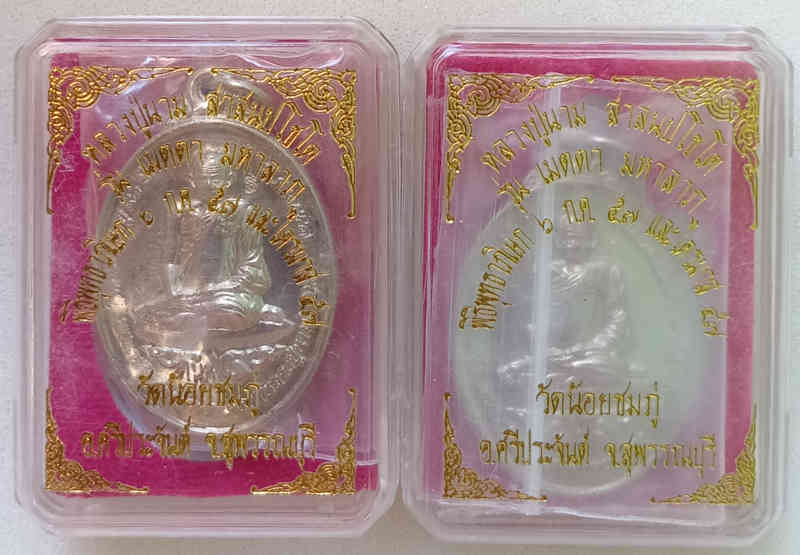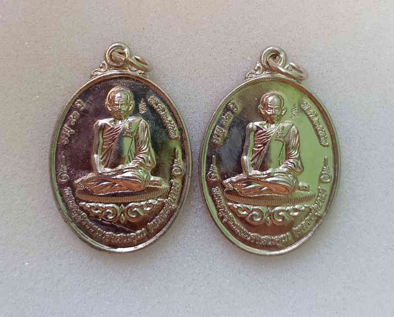 เหรียญเมตตามหาลาภหลวงปู่นามวัดน้อยชมภู่เนื้ออัลปาก้า2เหรียญเคาะเดียวแดงครับ |