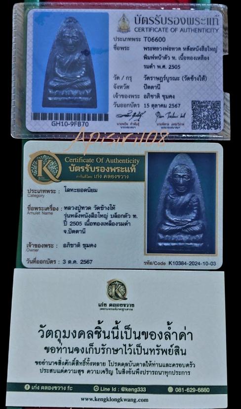 หลวงปู่ทวด ทองเหลืองรมดำ หนังสือใหญ่ ตัว ท. เสาอากาศ ((ท้อปสุด)) #บัตรสมาคม รอบัตรจีพระ