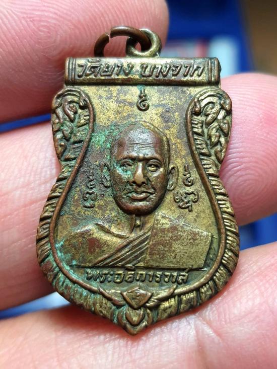 "วัดใจเคาะเดียวพระบ้าน" เหรียญ รุ่นแรก พระอธิการวาส วัดยาง บางจาก กรุงเทพฯ ปี 2498 เนื้อทองแดงกะไหล่ทอง |