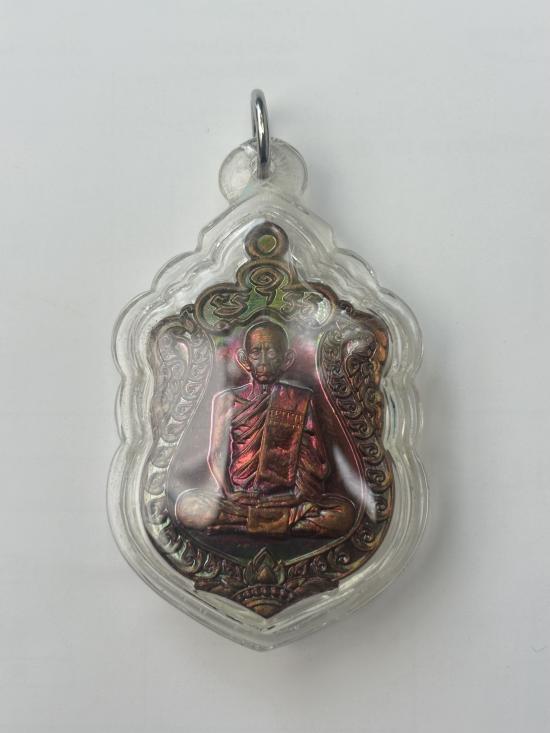 เหรียญเสมารวยมหาเศรษฐี หลวงพ่อรวย ปาสาทิโก ที่ระลึกฉลองอายุ93ปี ปี57 เนื้อทองแดงผิวรุ้ง เลี่ยมกันน้ำ