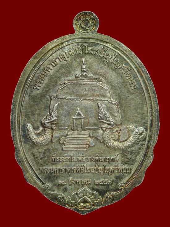 เหรียญ หลวงปู่คำพันธ์ โฆสปัญโญ เนื้อเงิน กว้าง 2.5*3.45 cm. วัดโฆสมังคลาราม จ.นครพนม ปี 2557