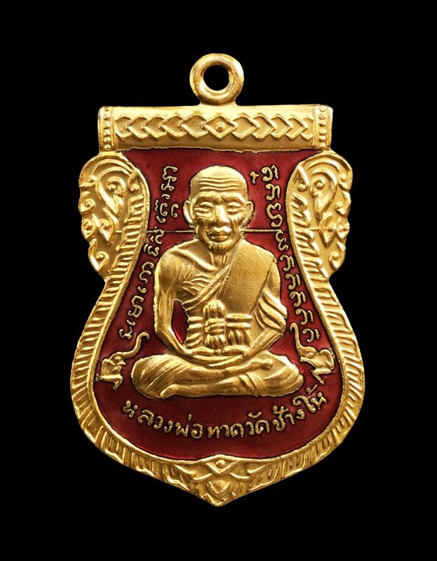 หรียญเสมาหน้าเลื่อน หลวงปู่ทวด รุ่น 432ปี อาจารย์ทิม พิธีใหญ่ศาลหลักเมือง จ.ปัตตานี ปี2557 เนื้อกะไหล่ทอง ลงยาแดง บล็อค 2 จุด รัดประคตเต็ม สวยเดิมๆพร้อมกล่องครับ