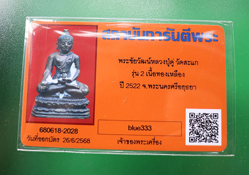 "เคาะเดียว" พระชัยวัฒน์รุ่น2 หลวงปู่ดู่ วัดสะแก เนื้อทองเหลือง สวยๆ เดิมๆ ปี 2522 พร้อมบัตรรับรองG-pra