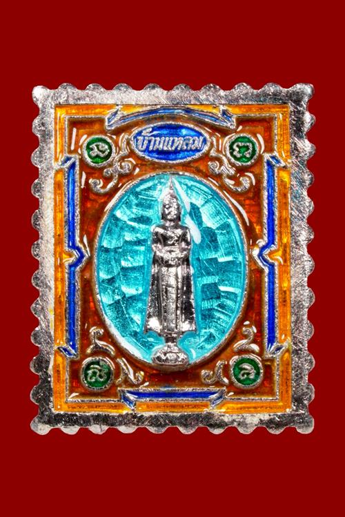 เหรียญแสตมป์ หลวงพ่อวัดบ้านแหลม ( เนื้อเงินลงยา ) ปี 2544 จ.สมุทรสงคราม สภาพสวย มาพร้อมกล่องเดิมครับ