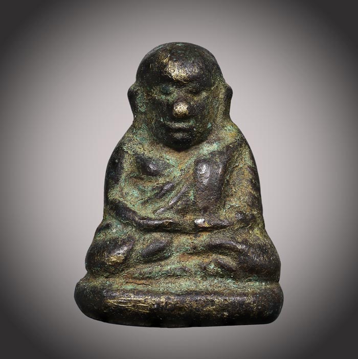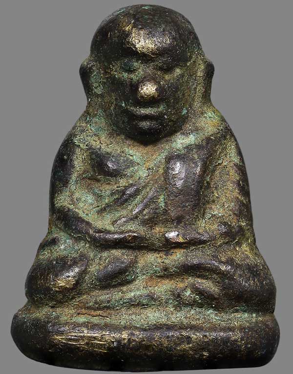 รูปหล่อ หลวงพ่อเงิน รุ่นปืนแตก พิมพ์เล็กแจกแม่ครัว วัดคงคาราม จ.พิจิตร ปี 2528 เนื้อทองผสม สภาพเก่ามีอายุ