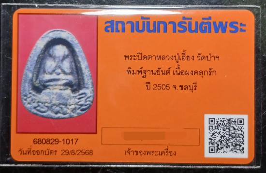 พระปิดตาหลวงปู่เฮี้ยง วัดป่า อรัญญิกาวาส จ.ชลบุรี