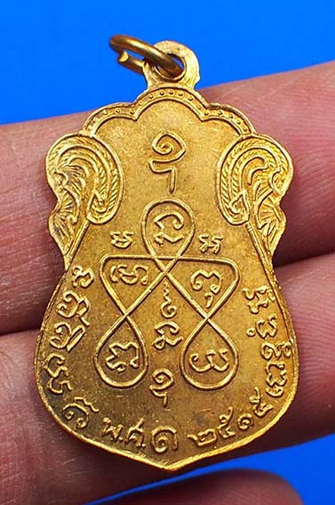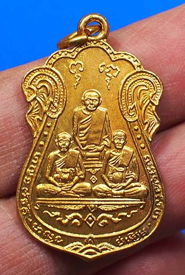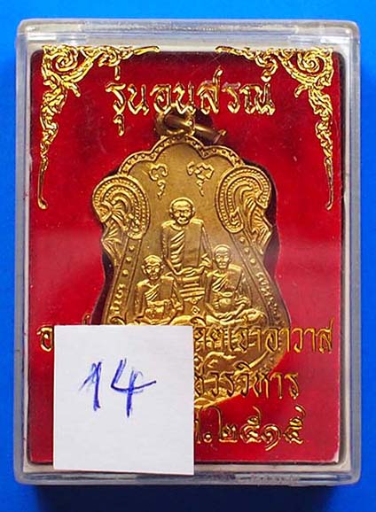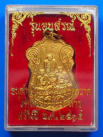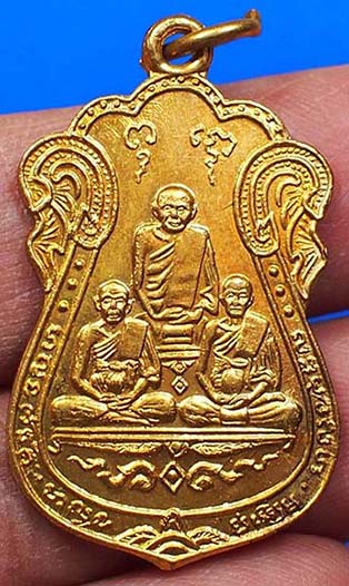 เหรียญหลวงปู่เอี่ยม วัดหนัง พิมพ์สามพระอาจารย์ หลังยันต์ห้า เนื้อทองแดงกะหลั่ยทอง ปี 2515 จ.กรุงเทพ พร้อมกล่องเดิม(14)