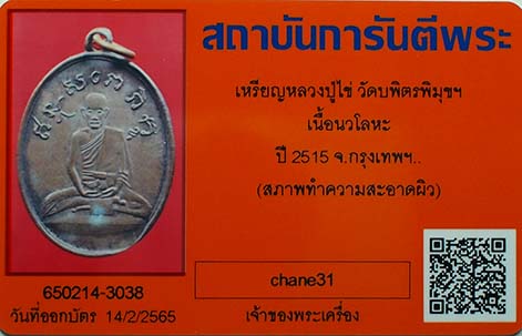 เหรียญหลวงปู่ไข่ วัดบพิตรพิมุข พิมพ์รูปไข่ เนื้อนวะโลหะ (บล็อคทองคำ) ปี 2515 จ.กรุงเทพ พร้อมกล่องเดิม และบัตรรับรองสถาบันการันตีพระ รับประกันตามกฎ G พระ ทุกประการครับ