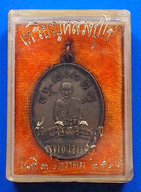 เหรียญหลวงปู่ไข่ วัดบพิตรพิมุข พิมพ์รูปไข่ เนื้อนวะโลหะ (บล็อคทองคำ) ปี 2515 จ.กรุงเทพ พร้อมกล่องเดิม และบัตรรับรองสถาบันการันตีพระ
