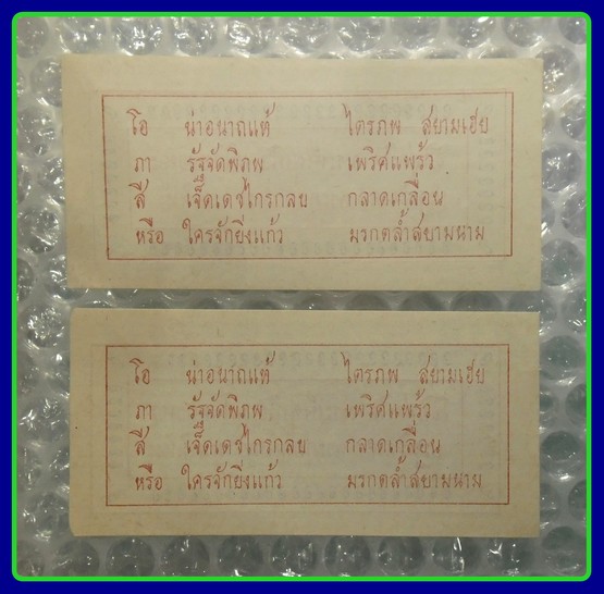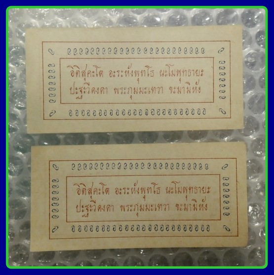 เก่าถึงยุค-นิยม หลังภาษาไทย2แผ่น-150-กระดาษยันต์กันภัย หลวงพ่อโอภาสี (หายาก ขนาดประมาณ*9.5+5 ซม.* |
