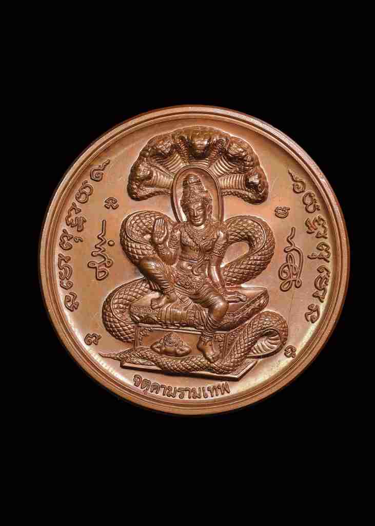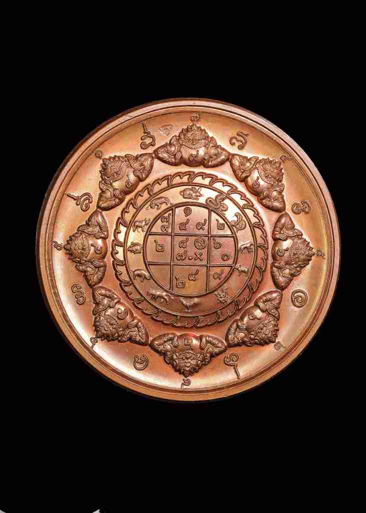 เหรียญเทวฤทธิ์ บาตรน้ำมนต์ ขนาด 5.5 ซม. สุริยัน-จันทรา รุ่นมรดกพ่อ วัดพุทไธศวรรย์ ปี ๒๕๔๗ เนื้อทองแดง