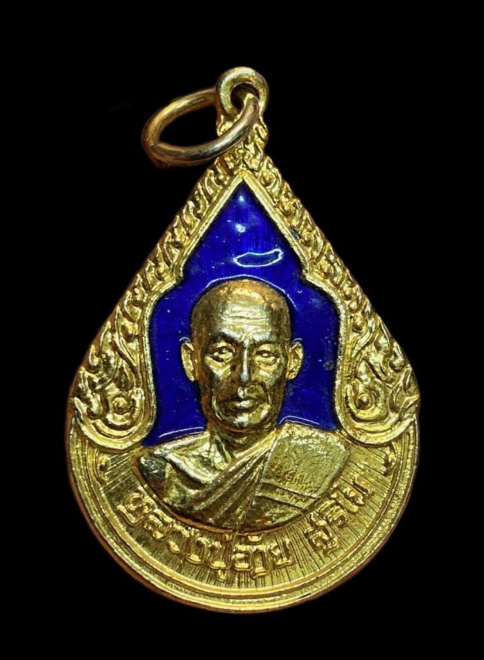 เหรียญหลวงปู่อ้าย สุริโย อดีตเจ้าอาวาสวัดอัมพาราม จ.เชียงใหม่ รุ่นพิเศษ เนื้อทองแดงกะไหล่ทองลงยาสีน้ำเงิน