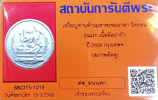 เหรียญจักรเพชร วัดดอน รุ่นแรก ปี 2508 ยานนาวา กรุงเทพฯ เนื้ออัลปาก้าผิวเดิมๆ (สภาพตัดหู) มาพร้อมบัตรการันตีแท้แน่นอนครับท่าน