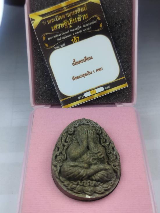 พระปิดตาพุทธศิลป์ รุ่น เศรษฐีพันล้าน เนื้อ ตะเคียน ฝังตะกรุดเงินแท้ 1 ดอก สร้าง 69 องค์ หมายเลข 57 หลวงปู่โต๊ะ วัดถ้ำสิงโตทอง ราชบุรี มวลสารและพิธีดีมาก มีกล่องเดิมจากวัด