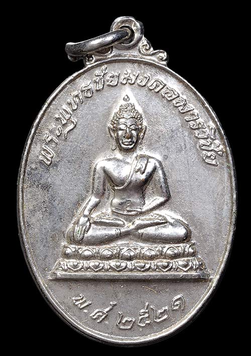 เหรียญพระพุทธชัยมงคลมารวิชัย หลวงพ่อสนิท วัดลำบัวลอย หลังเต่า จ.นครนายก เนื้อกระไหล่เงิน ปี2521 สวยมากครับ |