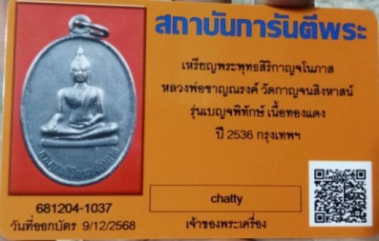 เคาะเดียวสายในดง เหรียญพระพุทธสิริกาญจโนภาส รุ่นเบญจพิทักษ์ หลวงพ่อชาญณรงค์ อภิชิโต วัดกาญจนสิงหาสน์ พร้อมบัตรการันตี