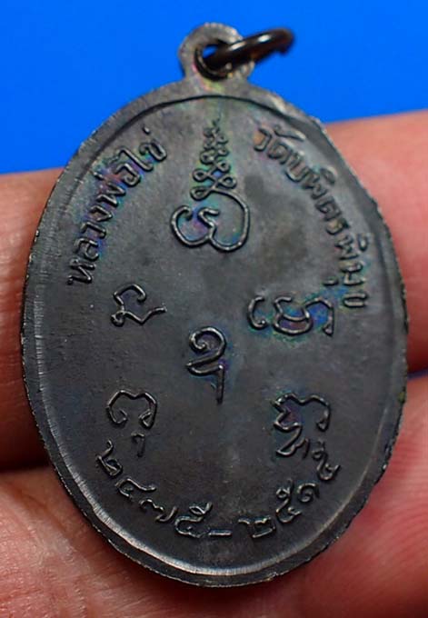 เหรียญหลวงปู่ไข่ วัดบพิตรพิมุข พิมพ์รูปไข่ เนื้อนวะโลหะ ปี 2515 จ.กรุงเทพ พร้อมกล่องเดิม และบัตรรับรองสถาบันการันตีพระ