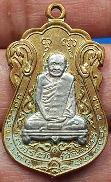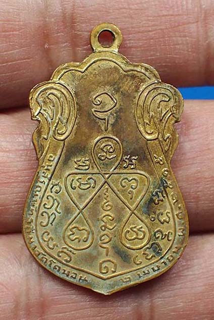 เหรียญหลวงปู่เอี่ยม วัดหนังฯ พิมพ์หลังยันต์ห้า (หน้าเณร) เนื้อทองแดงกะหลั่ยทอง ปี 2515 จ.กรุงเทพฯ (วัดโคนอนสร้าง)