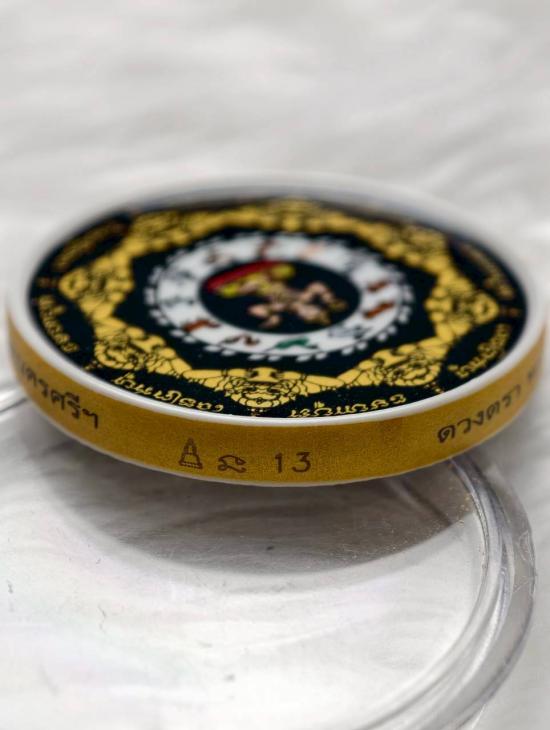 เคาะเดียวแดง จตุคาม-รามเทพ เนื้อเคลือบสีเบญจรงค์ ขนาด 5 ซม เลข13 สีดำ รุ่นบุญบารมี2เทพนครศรีฯ ปี2550