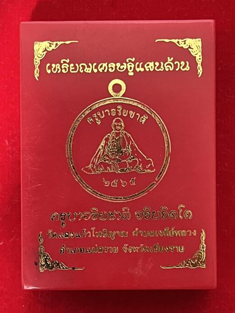 เหรียญเศรษฐีแสนล้าน ครูบาอริยชาติ วัดแสงแก้วโพธิญาณ เนื้อเงินลงยา เคาะเดียวแดงครับ
