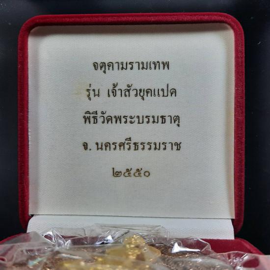 เหรียญบาตรน้ำมนต์ จตุคามรามเทพ รุ่นเจ้าสัวยุค8 วัดมหาธาตุวรมหาวิหาร จ.นครศรีธรรมราช ขนาด 5.5ซม.เนื้อนวะโลหะหน้ากากทองคำแท้ หมายเลข 300 หน้ากากทองคำหนัก 6-7 กรัม อยู่ในซีลเดิมกล่องกำมะหยี่เดิมจากวัด