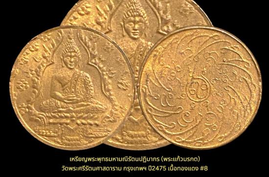 เหรียญพระพุทธมหามณีรัตนปฏิมากร (พระแก้วมรกต) วัดพระศรีรัตนศาสดาราม เนื้อทองแดง กรุงเทพฯ ปี2475 เคาะเดียว