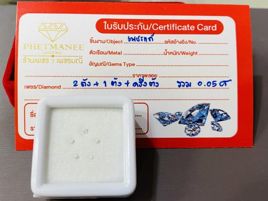 เพชรแท้ธรรมชาติ เหลี่ยมเบลเยี่ยมคัต แกะจากตัวเรือนสินหลุดจำนำ สภาพสมบูรณ์ น้ำหนัก 0.05 กะรัต (2 ตัง+1 ตัง+ ครึ่งตัง) น้ำประมาณ ~97-98VS1-VVS |