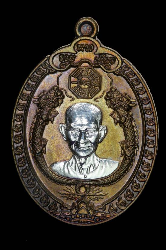 เหรียญ "เซียนแปะโรงสี" (โง้วกิมโคย) รุ่นรวยทางเดียว 168 ยิ้มรับทรัพย์ วัดลำกระดาน เนื้อนวะ หน้าเงิน เคาะเดียว 250-