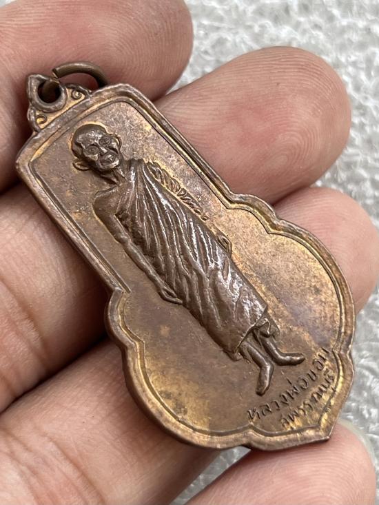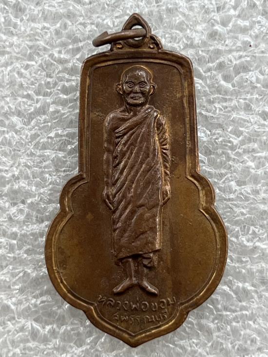 เหรียญหลวงพ่อขอม วัดโพธาราม (วัดไผ่โรงวัว) จ.สุพรรณบุรี จัดสร้างปี 2505 หลังยันต์ จัดสร้างพิธีพุทธาภิเษกใหญ่เสาร์ 5 ปี 2505