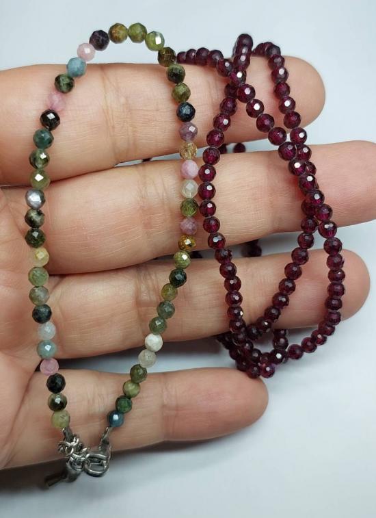 ***วัดใจ***สร้อยโกเมนเจียเหลี่ยม เล่นแสง ขนาดเล็ก 3 mm. ยาว 21 นิ้ว กับข้อมือทัวร์มาลีน Tourmaline ขนาดเล็ก 3 mm |