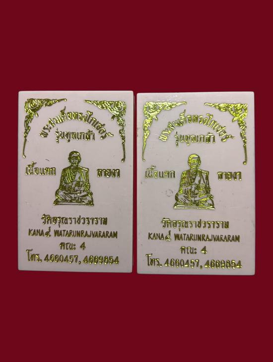 พระสมเด็จทรงไกเซอร์ รุ่นทูลเกล้า วัดอรุณราชวราราม ปี 2529 พิมพ์ใหญ่ เนื้อแตกลายงา ฝังพลอย ปั๊มตรายาง กล่องเดิม รวม 2 องค์ สวยครับ