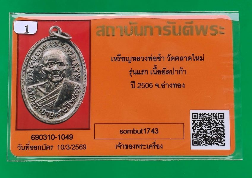 เหรียญหลวงพ่อซำ วัดตลาดใหม่ ปี 2506 รุ่นแรกพิมพ์นิยม พร้อมบัตรรับรองครับ องค์ที่ (2)