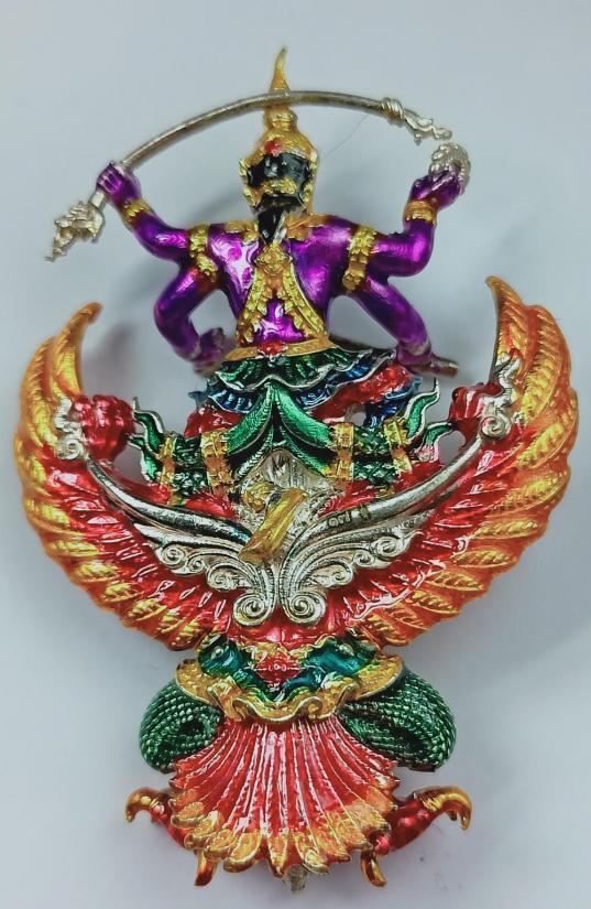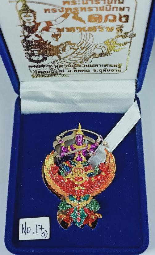 พระนารายณ์ทรงครุฑราชปักษา รุ่น ดวงมหาเศรษฐี หลวงปู่ดวงเศรษฐี วัดหนองไผ่ เนื้อเงินลงยาราชาวดี (สูง 4.7 ซม.) เบอร์ 17 พร้อมกล่องเดิมครับ (น้ำหนัก21.8กรัม) |