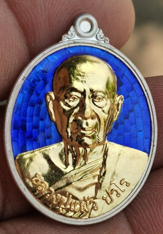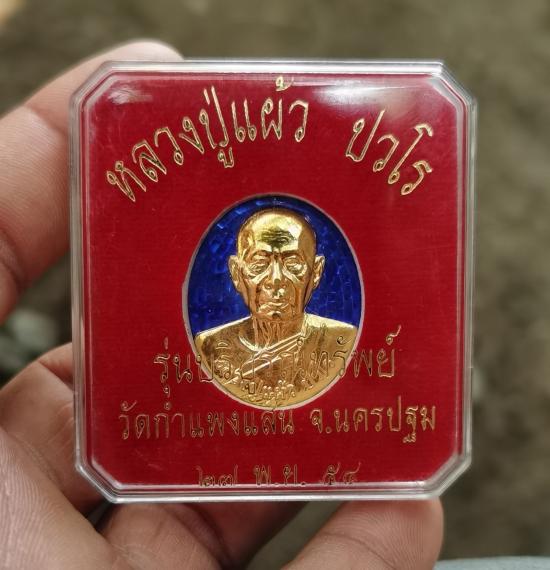 เคาะเดียวแดงเหรียญรุ่นบริบูรณ์ทรัพย์ หลวงปู่แผ้ว ปวโร...เนื้อเงินหน้ากากทองคำ