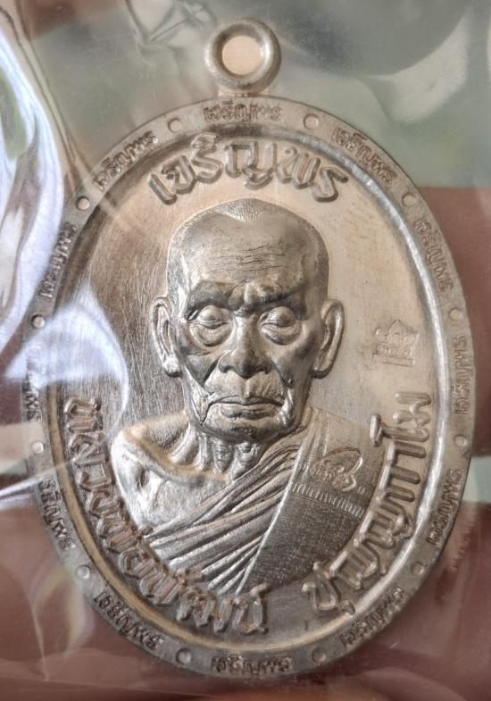 เหรียญเจริญบน 65 ขอบเจริญพร หลวงพ่อพัฒน์ ปุญฺญกาโม เนื้อทองแดงพรายเงิน เลข ๔๖๗๐ สวยๆ พร้อมกล่องเดิม