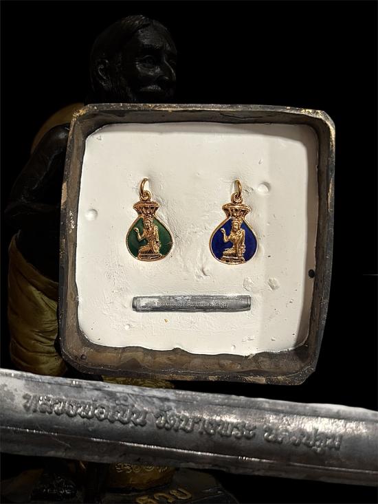 ~~มีนางกวัก ขวัญ 2 เหรียญ ลงยาเขียว/น้ำเงิน
