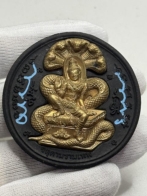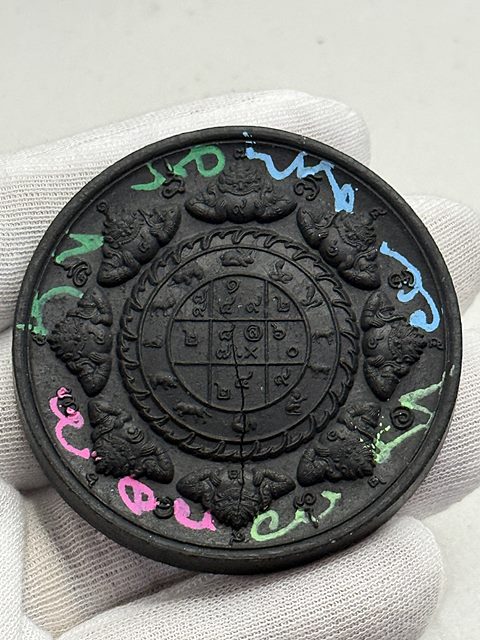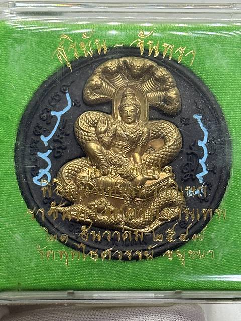 พระผงสุริยัน-จันทรา ดวงตราเทวฤทธิ์ เนื้อผงสีดำหน้ากากสัมฤทธิ์ สร้าง 1,000 องค์ รุ่นมรดกพ่อ วัดพุทไธศวรรย์ ปี2547 มีกล่อง 2