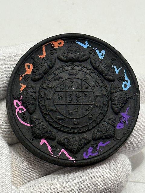 พระผงสุริยัน-จันทรา ดวงตราเทวฤทธิ์ เนื้อผงสีดำหน้ากากสัมฤทธิ์ สร้าง 1,000 องค์ รุ่นมรดกพ่อ วัดพุทไธศวรรย์ ปี2547 มีกล่อง 3 |