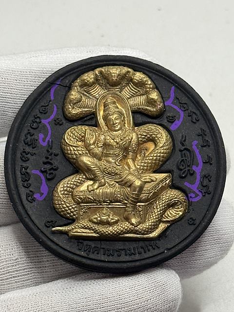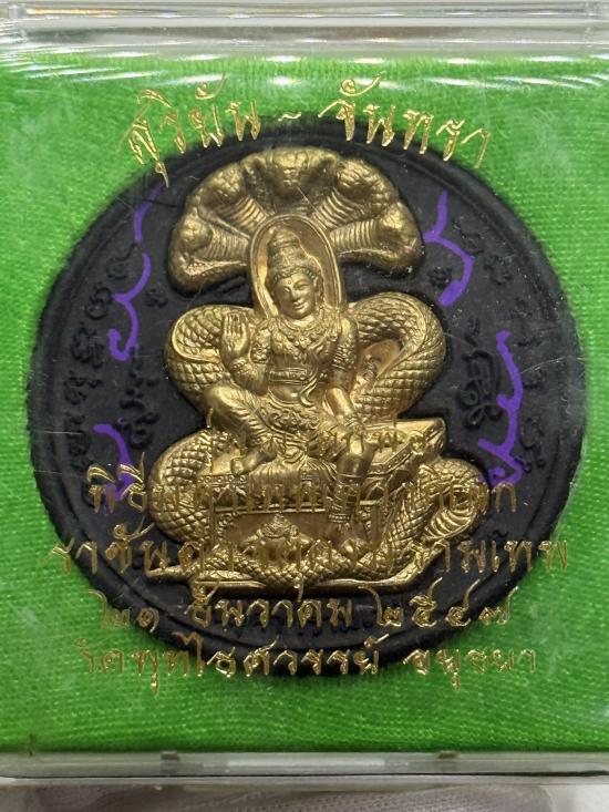 พระผงสุริยัน-จันทรา ดวงตราเทวฤทธิ์ เนื้อผงสีดำหน้ากากสัมฤทธิ์ สร้าง 1,000 องค์ รุ่นมรดกพ่อ วัดพุทไธศวรรย์ ปี2547 มีกล่อง 3