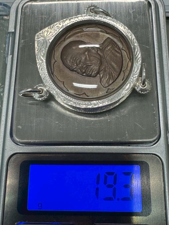 เลี่ยมจับขอบเงินสั่งทำ 3 ห่วง น้ำหนักเงินรวมพระ 19.3 กรัม
