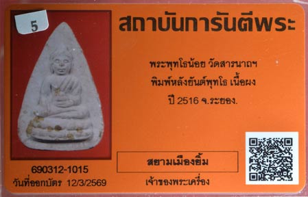 พระพุทโธน้อย รุ่น2 พิมพ์หลังยันต์พุทโธ ปี 2516 วัดสารนาถธรรมาราม จ.ระยอง เคาะเดียว |