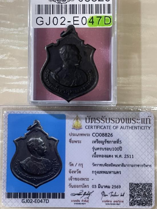 (เคาะแดง1900) +บัตรสมาคม เหรียญร5 ครบรอบ100ปี วัดราชบพิตร