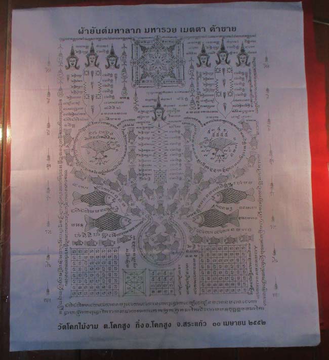 ผ้ายันต์ มหาลาภ มหารวย เมตตา ค้าขาย วัดโคกไม้งาม กิ่ง อ.โคกสูง จ.สระแก้ว ครับ (พระบ้าน ครับ) |