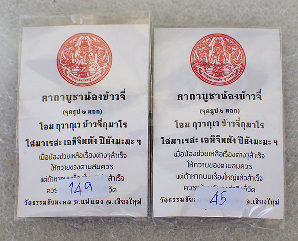 $วัดใจทีเดียว 2 องค์ค่ะ น้องข้าวจี่ รุ่น มีเงินล้าน พระครูปลัดธนภัทร วัดธรรมชัยมงคล อ.แม่แตง จ.เชียงใหม่ ขนาด 2.2 ซ.ม. เนื้อซาตินเงิน เลข ๑๔๙ + เนื้อสัมฤทธิ์ชุบพิ้งค์โกลด์ เลข ๔๕ พร้อมซองเดิมค่ะ$ |