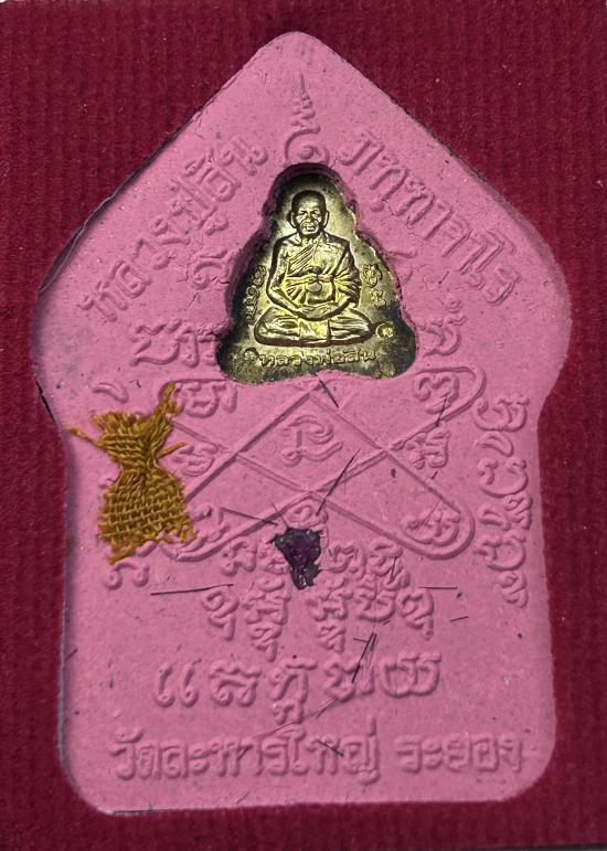 เคาะแรกแดงครับ พระขุนแผนผงพรายกุมาร รุ่น 7 รอบ พิมพ์ใหญ่ หลวงพ่อสิน วัดละหารใหญ่ จ.ระยอง สร้างปี2555 เนื้อชมพูทาทอง หลังฝังพระปิดตาหลังรูปเหมือนเนื้อฝาบาตร+จีวร+พลอยเสก+เกศา โค๊ดมิ โค้ต ส. เลข1632 สภาพสวย มาพร้อมกล่องเดิมๆ พระไม่ผ่านการใช้ครับ
