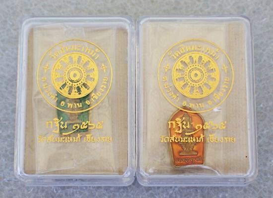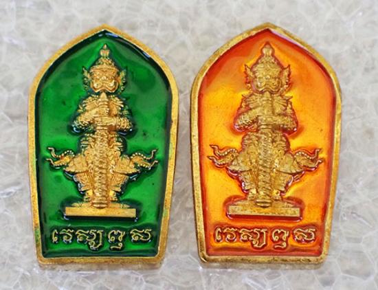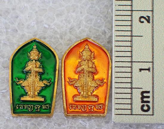 $วัดใจทีเดียว 2 องค์ค่ะ ปรกใบมะขาม ท้าวเวสสุวรรณ วัดสันมะเหม้า อ.พาน จ.เชียงราย กฐิน ปี 2565 เนื้อทองเหลือง ลงยาสีเขียว เลข ๒๑๑ + เนื้อทองเหลือง ลงยาสีส้ม เลข ๒๑๑ (แยกชุดสีตามวัน) พร้อมกล่องเดิมค่ะ$
